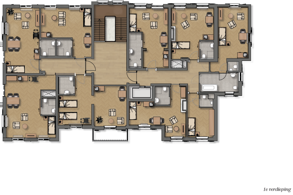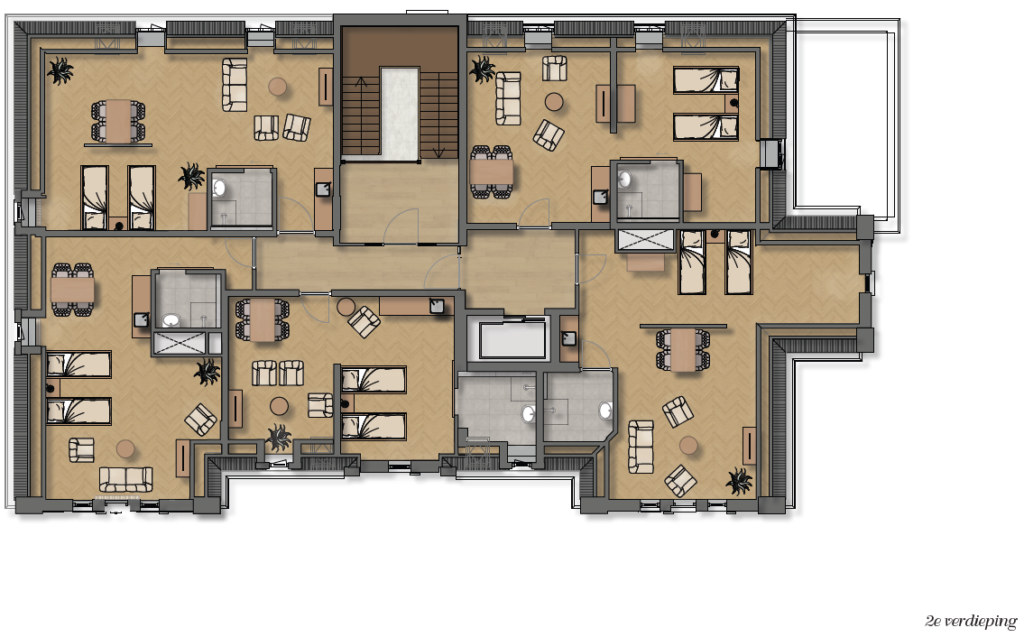 Daarnaast zijn er nog 6 appartementen voor echtparen, variërend in grootte tussen de 40 en 61 m².